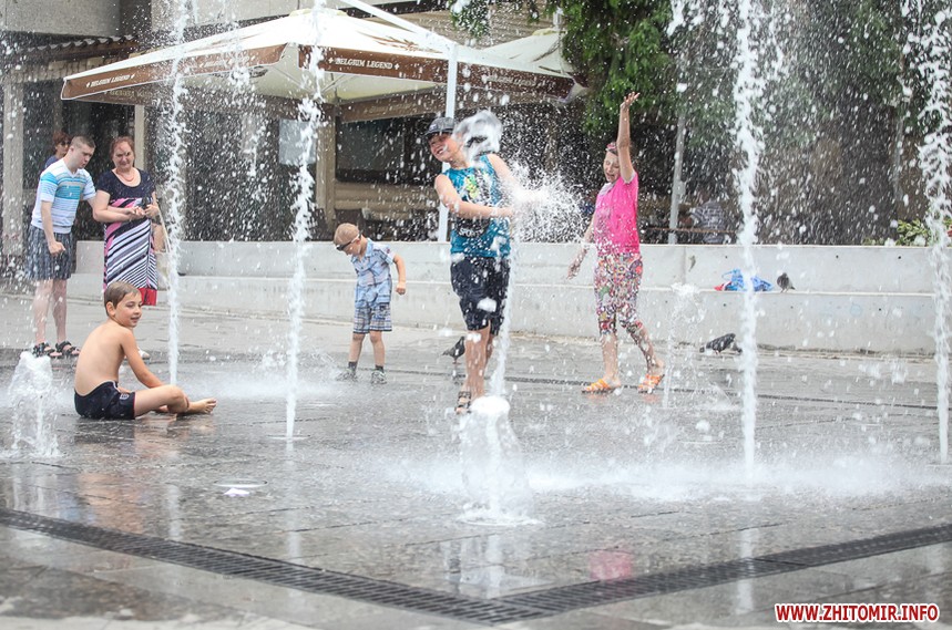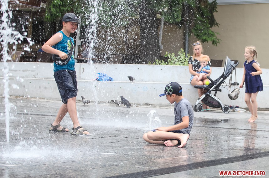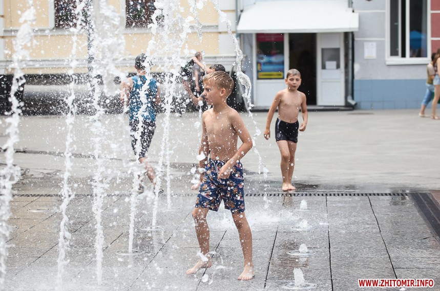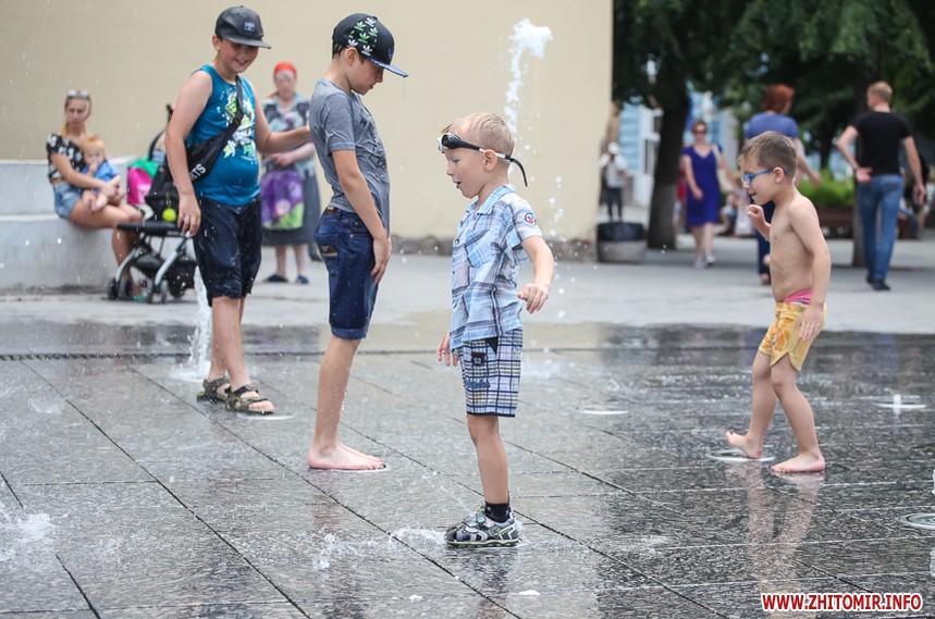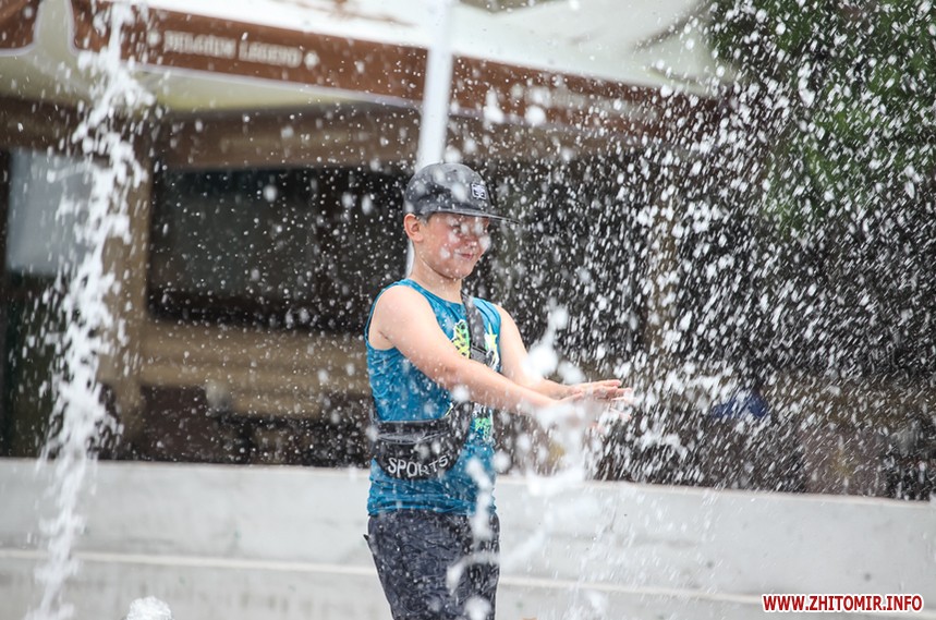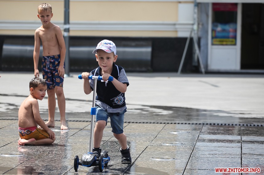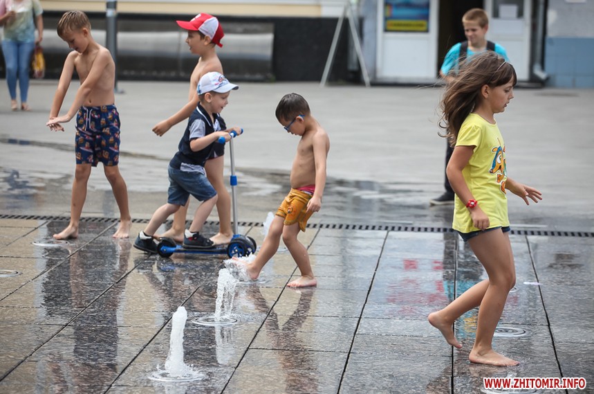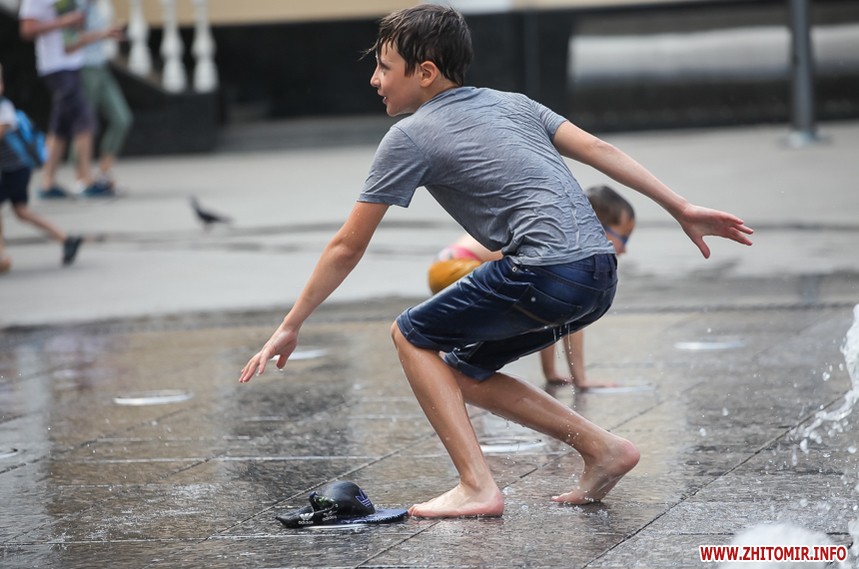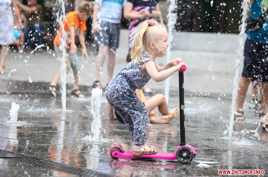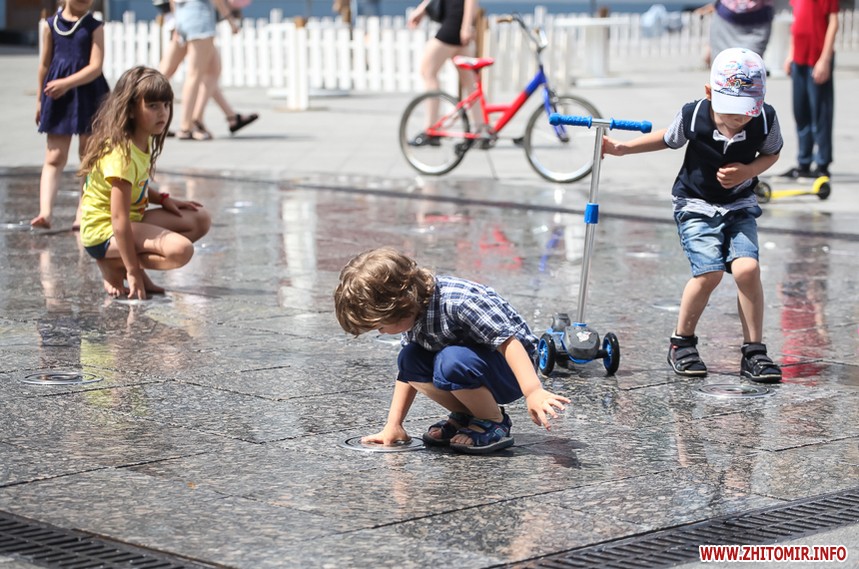 У житомирських дітлахів цього літа є нова забавка – фонтан на Михайлівській, по якому можна бігати чи навіть їздити на самокаті.