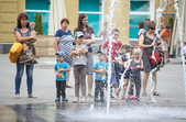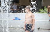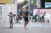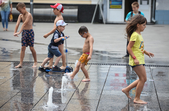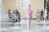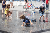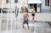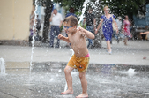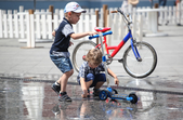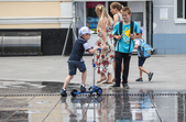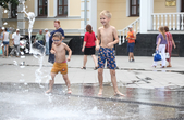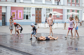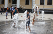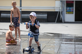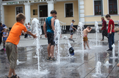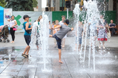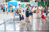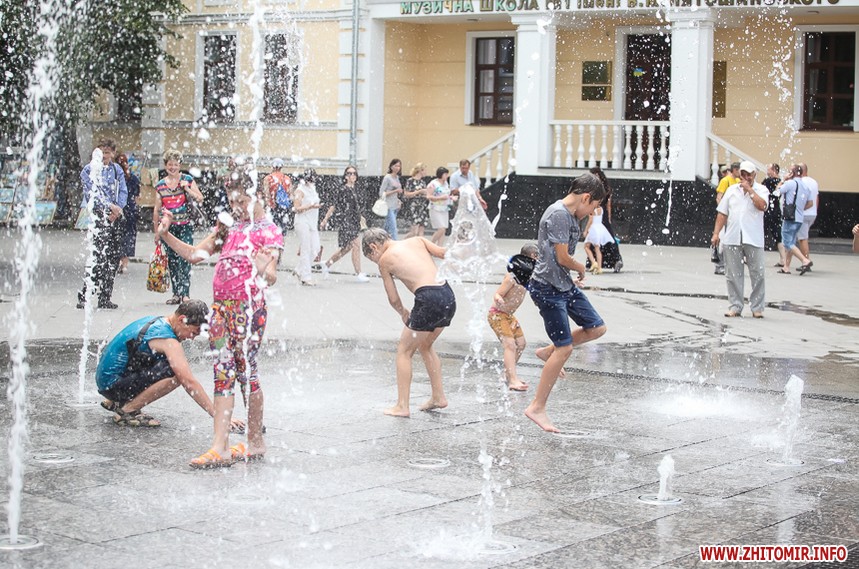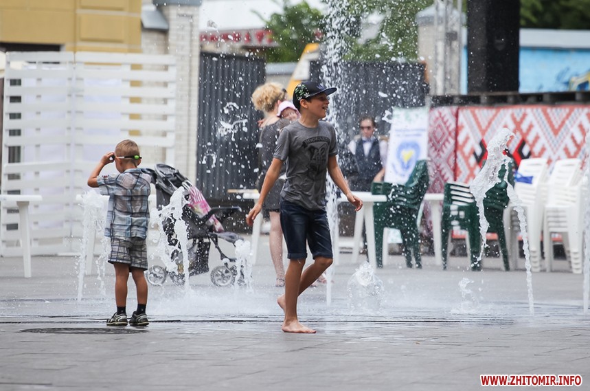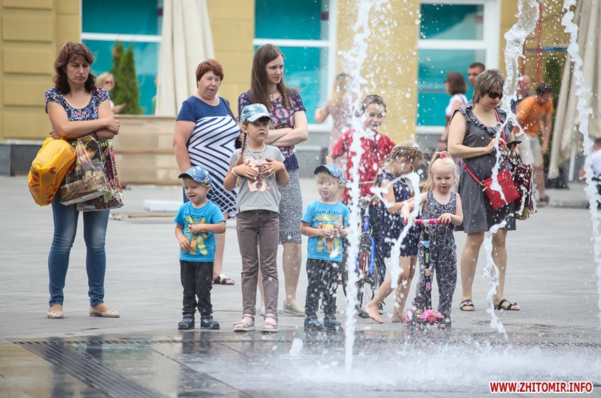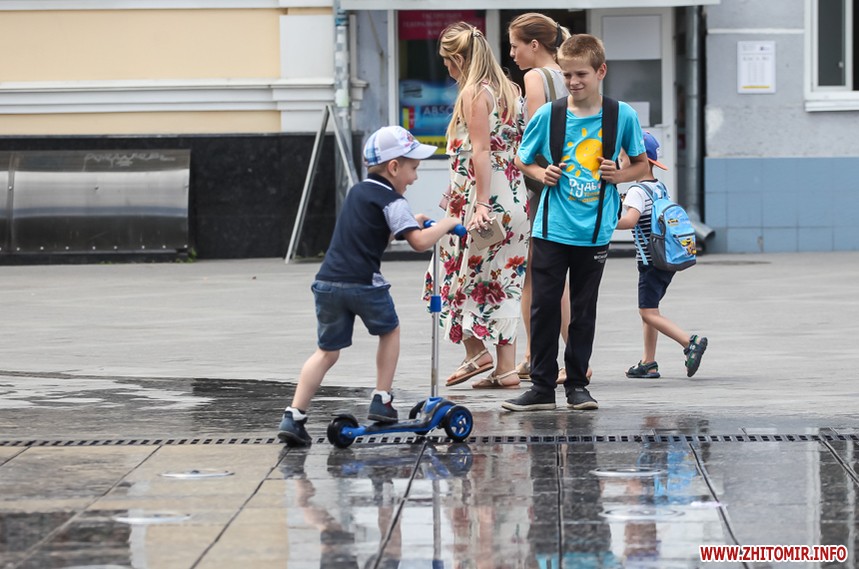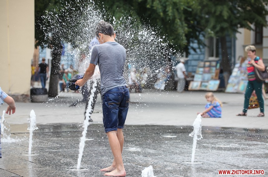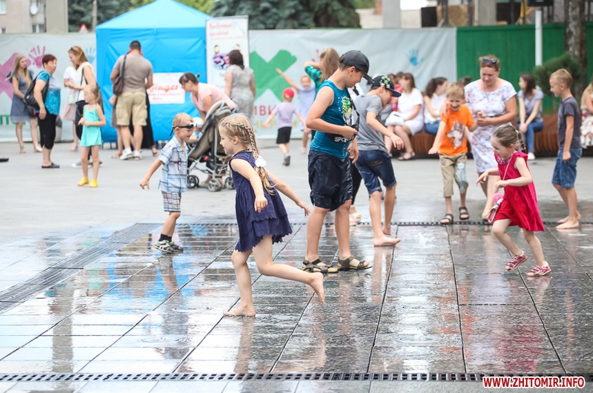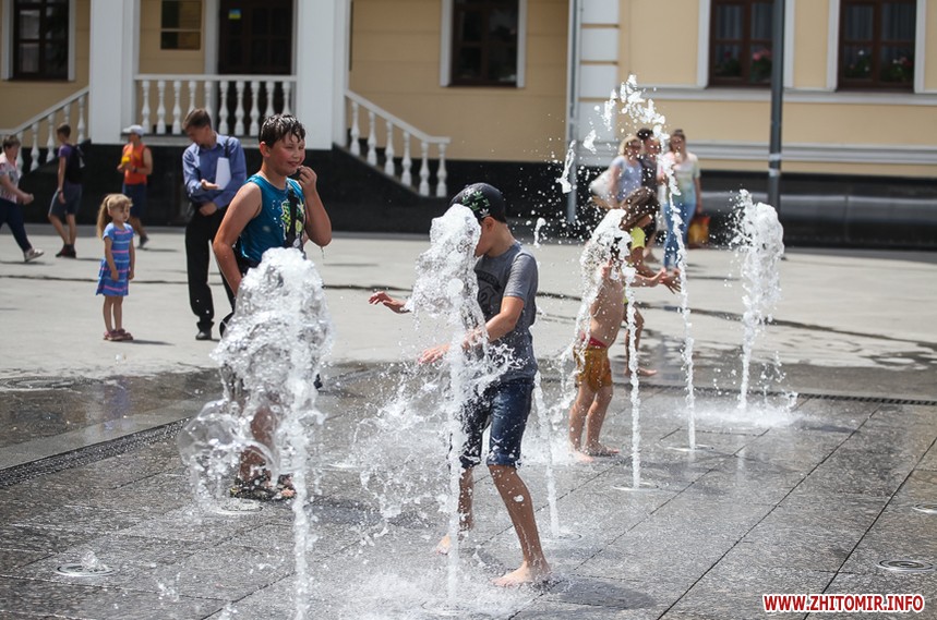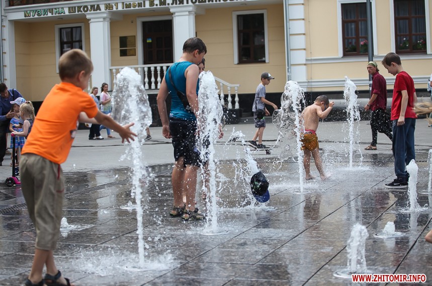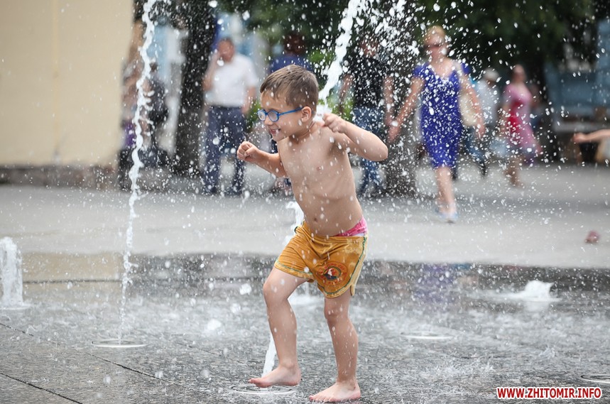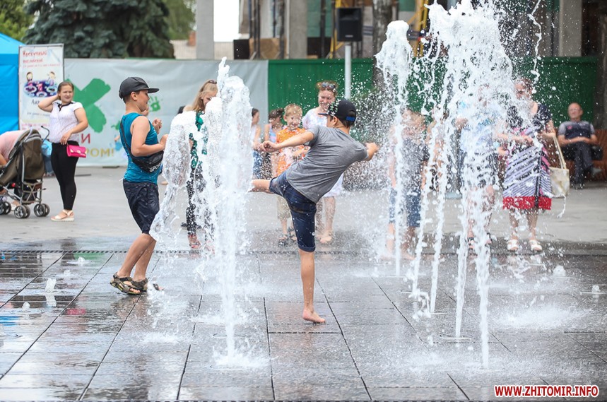 У житомирських дітлахів цього літа є нова забавка – фонтан на Михайлівській, по якому можна бігати чи навіть їздити на самокаті.