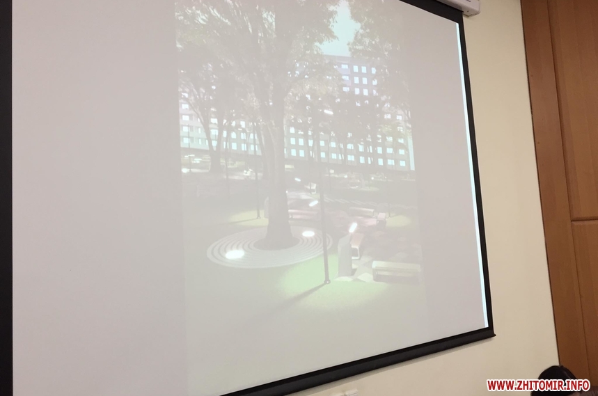 Головний архітектор Житомира Юрій Безбородов 22 червня презентував проект реконструкції скверу на розі вулиць Небесної сотні та Лятошинського.