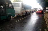 Після рясного дощу на Київській, поблизу перехрестя зі Східною, стояли учасники ДТП - автомобілі Ford і Citroën. Зі слів поліцейських, обидва рухалися в напрямку автовокзалу. Перед пересхестям Ford «наздогнав» Citroën. Свідки розповіли про потерпілу – пасажирку Ford, яку забрала швидка. Автомобілі отримали незначні ушкодження. Учасники ДТП чекали приїзду слідчих, рух по Київській був ускладнений.