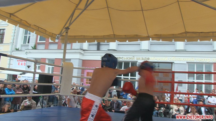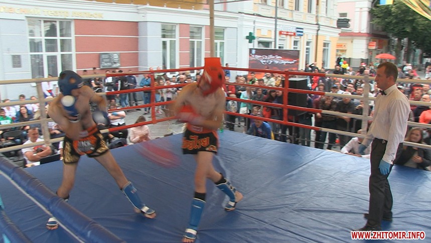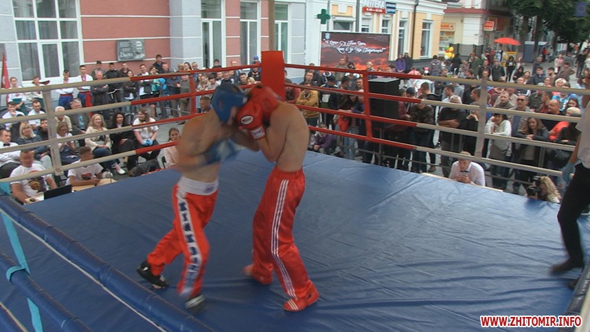 На День молоді на Михайлівській у Житомирі відбувся турнір із кікбоксингу WAKO «Перший кошовий» під відкритим небом. На запеклі двобої на ринзі зібралось подивитись щонайменше кілька сотень житомирян.