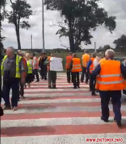 Представники районних філій ДП «Житомирський облавтодор» 25 червня перекривають трасу міжнародного значення Київ – Чоп в Пулинському районі Житомирської області через кількамісячні борги по зарплаті.