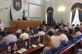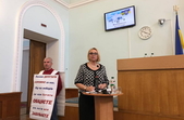 На сесію міської ради також прийшли депутати облради від ВО «Батьківщина»: Анжеліка Лабунська, яка очолює обласну організацію цієї партії, та Володимир Кропивницький – голова фракції в облраді, дружина якого є депутатом міської ради від ВО «Батьківщина».