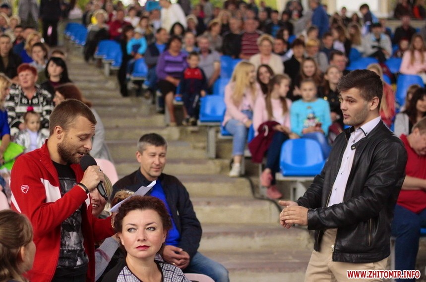Незвичайну постановку "Жіноча дуель" представили вихованці студії сценічного та артистичного фехтування театрального колективу "Юність", силову парну акробатику демонстрували на сцені учасники житомирської команди "Sport Bizons", а сучасні прийоми карате – майстри спорту клубу карате "До Дзьо". На вході до літнього театру діяла фотозона "Синьо-жовте селфі у День молоді", виставка українських поробок від спілки народних майстрів "Мистецьке Полісся", майстер-класи стосовно прав та обов'язків молоді та правил дорожнього руху провели представники управління патрульної поліції м. Житомира. Бажаючим роздавали синьо-жовті повітряні кульки.