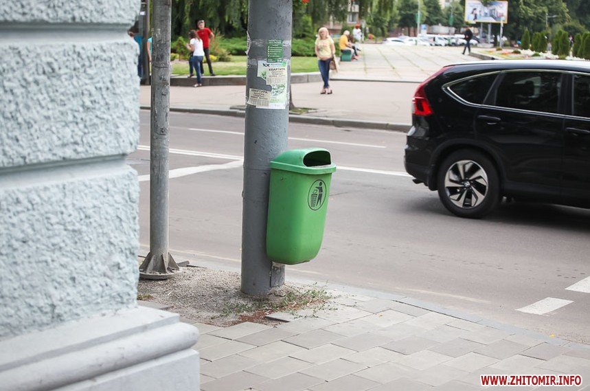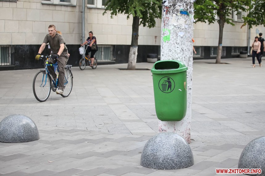 Зелених пластикових євроурн, закуплених наприкінці 2016 року за 300 тисяч бюджетних гривень, на житомирських вулицях стає все менше. У грудні 2016 року в Житомирі розмістили близько 380 урн, і вже навесні 2017-го деякі з них прогоріли через недопалки.