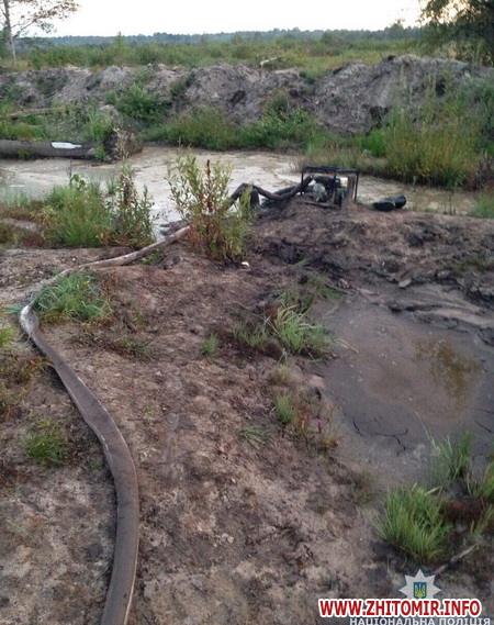 Парубків, які за допомогою мотопомпи намагалися видобувати сонячне каміння у лісовому масиві Олевщини, 4 липня затримали поліцейські рейдувальники. З незаконної копальні вилучене старательське приладдя.