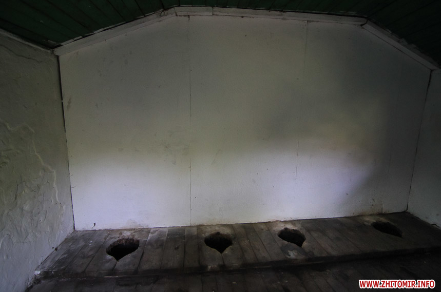 Друга вбиральня - у верхній частині парку Гагаріна, за літаком та автодромом. Тут немає перегородок, фактично - просто дірки у підлозі і один смітник. Води теж немає. Запах чути ще здалеку.