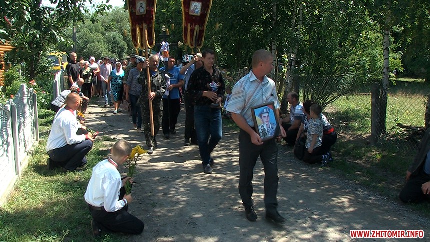 5 липня у с. Жеребилівка Новоград-Волинського району Житомирської області, ставши навколішки живим коридором, більше сотні людей прощалися із 25-річним загиблим Петром Барбухом. Сьогодні його хоронили вдруге. Боєць загинув у серпні 2014 разом з двома побратимами. Екіпаж танку Т-64 загинув у результаті нерівного бою з ворожим Т-74, коли прикривав відступ колони поранених з блокпосту в районі смт Никифорове Сніжнянської міської ради Донецької області. У результаті зіткнення здетонував боєкомплект українського танка.