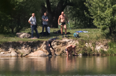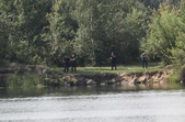 Про це Житомир.info розповів читач, який побачив з протилежного боку водойми людей у формі.