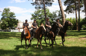 Коні не бояться вистрілів, адже їх спеціально тренують, підриваючи петарди, а після кожного вистрілу їм дякують смаколиками.