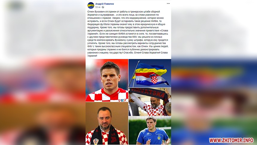 7 липня після переможного матчу над росіянами на Чемпіонаті Світу з футболу гравець збірної Хорватії Домагой Віда та помічник тренерського штабу Огнєн Вукоєвич виклали у соцмережу відеозвернення, зміст якого згодом викликав хвилю обурень з боку організаторів чемпіонату. А все тому, що спортсмени присвятили свою перемогу Україні, зокрема «Динамо», вигукнувши «Слава Україні». На відміну від українських вболівальників, яких потішила позиція хорватів екс-динамівців, ФІФА засудила їхню поведінку. Ба більше, дисциплінарний комітет виніс Віда попередження, а Вукоєвича взагалі оштрафували на 15 тис. доларів. Опісля такої звістки користувачі Facebook засипали офіційну сторінку ФІФА дописами на підтримку хорватів.