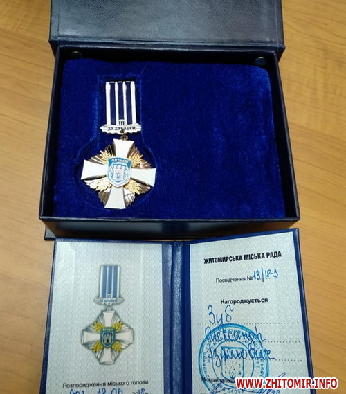 Житомирського волонтера Олександра Зуба нагородили відзнакою «За заслуги перед містом ІІІ ступеня».