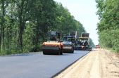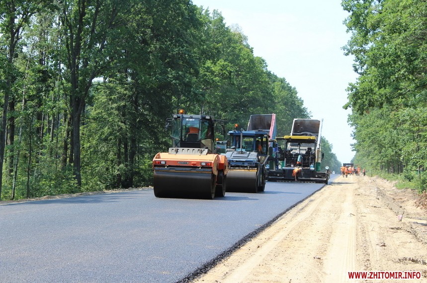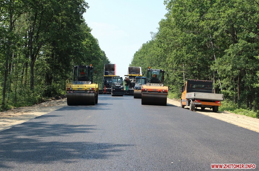 На дорозі регіонального значення Васьковичі-Шепетівка в Житомирській області під наглядом поліції влаштовують останній шар асфальтобетону.