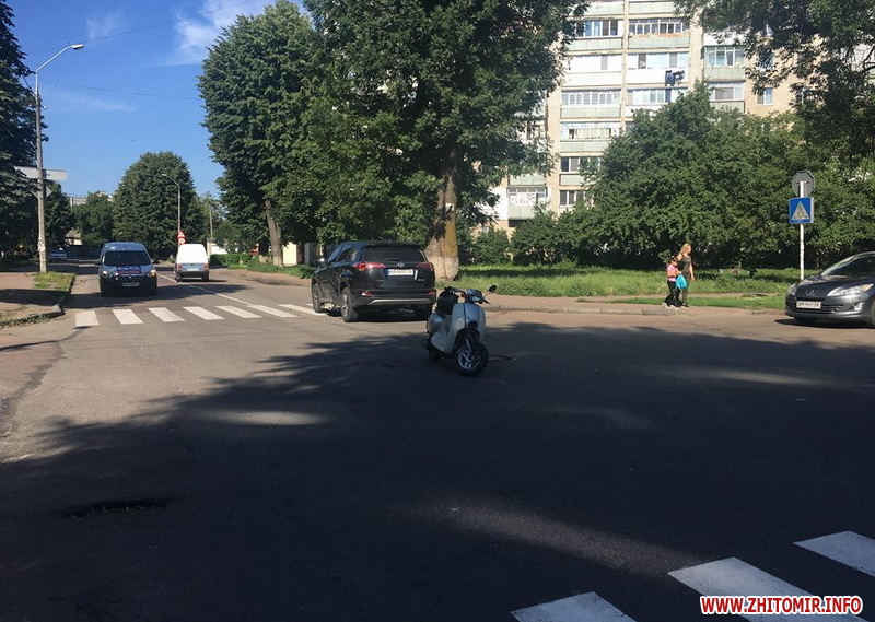 Уранці 12 липня на нерегульованому перехресті Шевченка-Князів Острозьких у Житомирі не розминулися автомобіль і мопед.