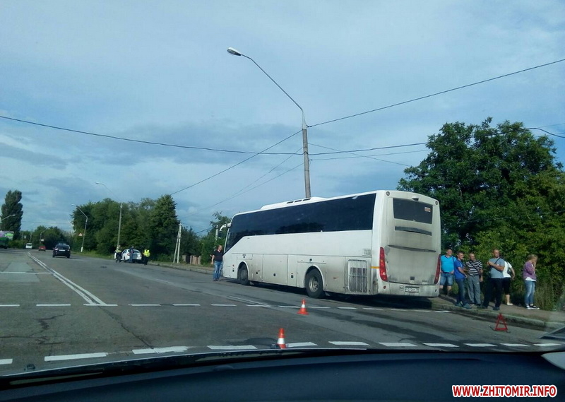 У Житомирі 17 липня поблизу аеропорту, на Київському шосе, зіштовхнулися рейсовий автобус та автомобіль Toyota.