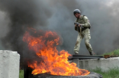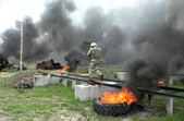 Як діяти у разі власного загоряння, або загоряння побратима, бійцям розповідають інструктори. Опісля, військові переходять від теорії до практики, долаючи колючий дріт, високі стіни, палаючі палі та танки. Не забуваючи при цьому прикривати спину один-одного від умовних куль.