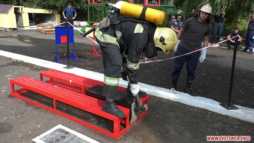 У Житомирі більше сотні рятувальників змагаються за звання «Найсильнішого пожежного-рятувальника» області. Організатори змагань розповідають: щоб стати кращим, останні повинні без порушень та якнайшвидше подолати смугу перешкод, яка складається з шести етапів.