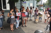Зранку 20 липня біля стін Житомирської міської ради зібралися декілька десятків зоозахисників з плакатами.