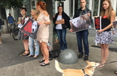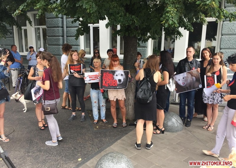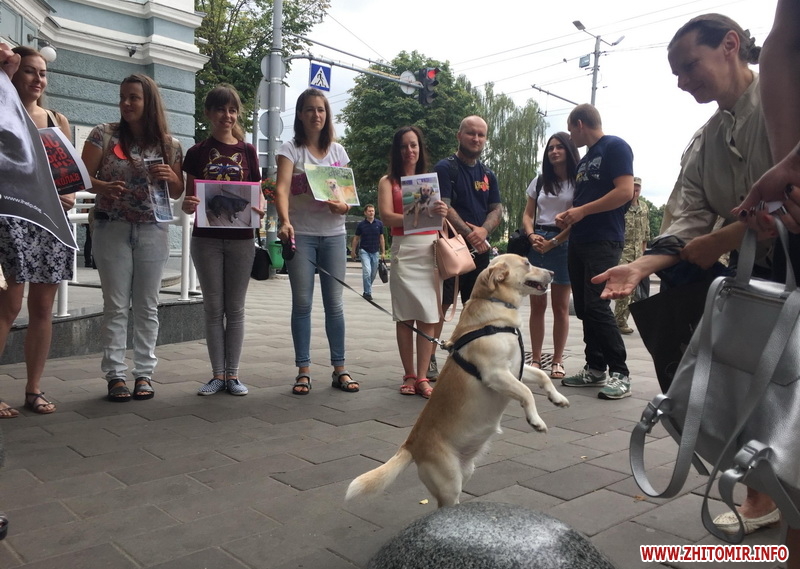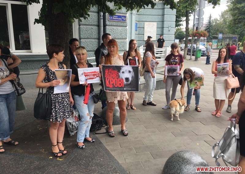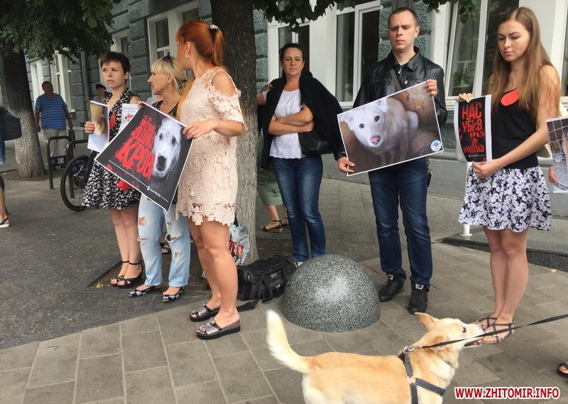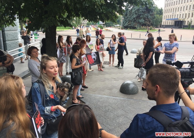 Житомиряни прийшли під стіни мерії, аби висловити своє обурення вбивствам безпритульних собак на комунальному підприємстві Центр захисту тварин у Миколаєві. Також люди планують збирати підписи для звернення до президента, аби законодавство по жорстокому поводженню з тваринами врешті запрацювало.