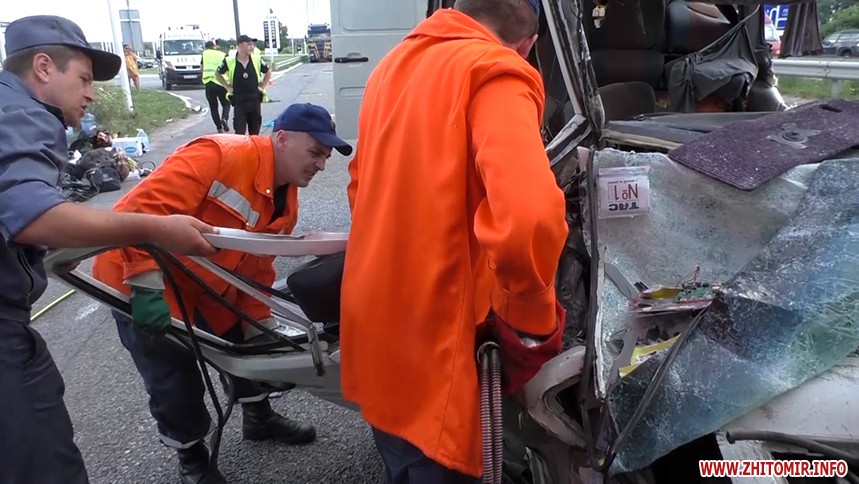 «До приїзду рятувальників ті люди, які проїжджали повз, надали допомогу постраждалим з маршрутки. Рятувальникам вдалося вивільнити хлопчика, який був затиснутий конструкціями автомобіля всередині, і каретою «швидкої допомоги» його доправили до лікарні», - розповів заступник начальника управління ДСНС у Житомирській області Олег Держанівський.