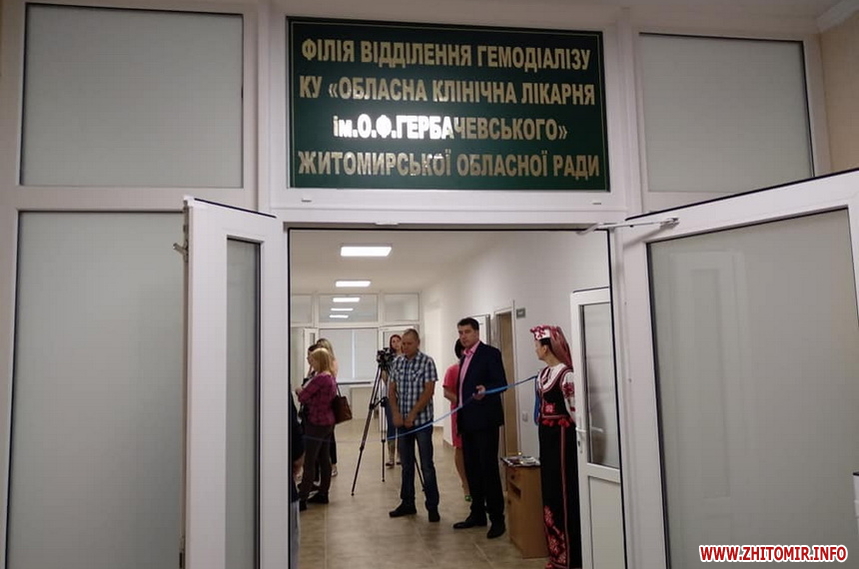 В приміщенні комунальної установи «Житомирське обласне стоматологічна медичне об'єднання» 24 липня відкрили нове відділення гемодіалізу. У відділенні облаштовано 10 місць для лікування пацієнтів з хронічною нирковою недостатністю.