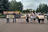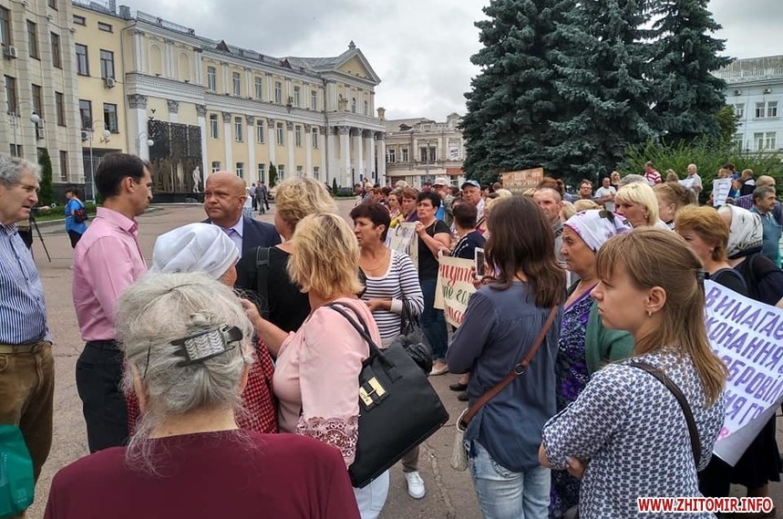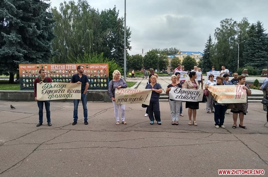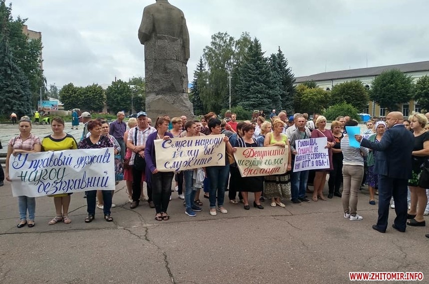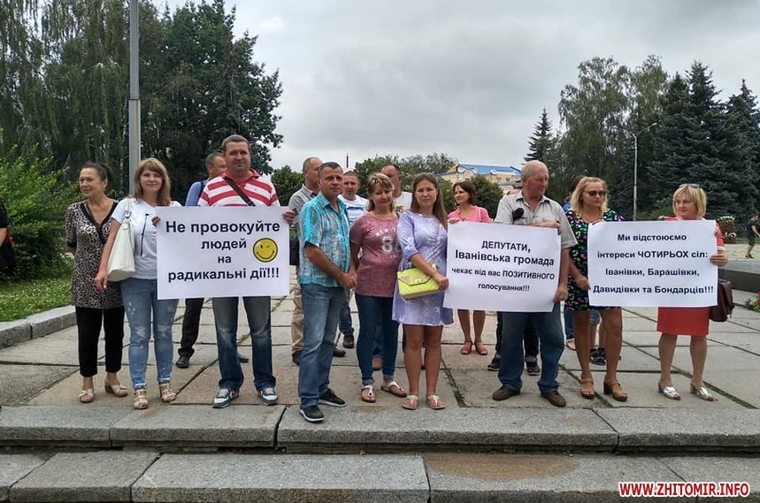 Зранку під стінами ОДА пікетують селяни. Жителі села Харитонівка вимагають не приєднувати їх до Коростишева, а жителі Іванівки виступають проти приєднання їхньої громади до Житомира.