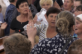 «Ми приїхали з села Харитонівка, ми не хочемо приєднуватися до Коростишева, а нас хочуть силою приєднати. Ми хочемо приєднатися із громадою Шахворостівки. Що нас не влаштовує: хочуть наші землі, у нас багато каменю, у нас заправка стоїть на землі Харитонівської сільської ради. Хочуть забрати тільки через гроші, люди їм не треба. Тому, ми просимо, щоб нашу вимогу задовольнили», - розповідає жителька Харитонівки Галина Дубовик.