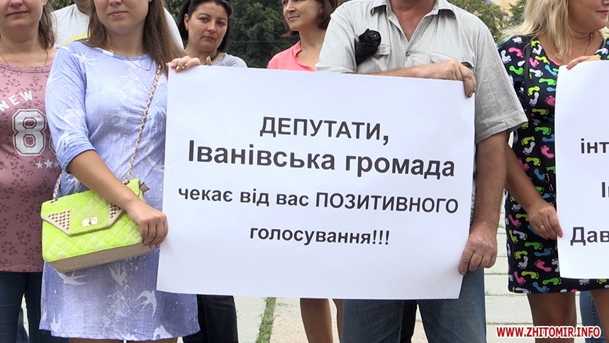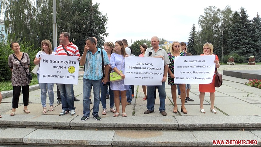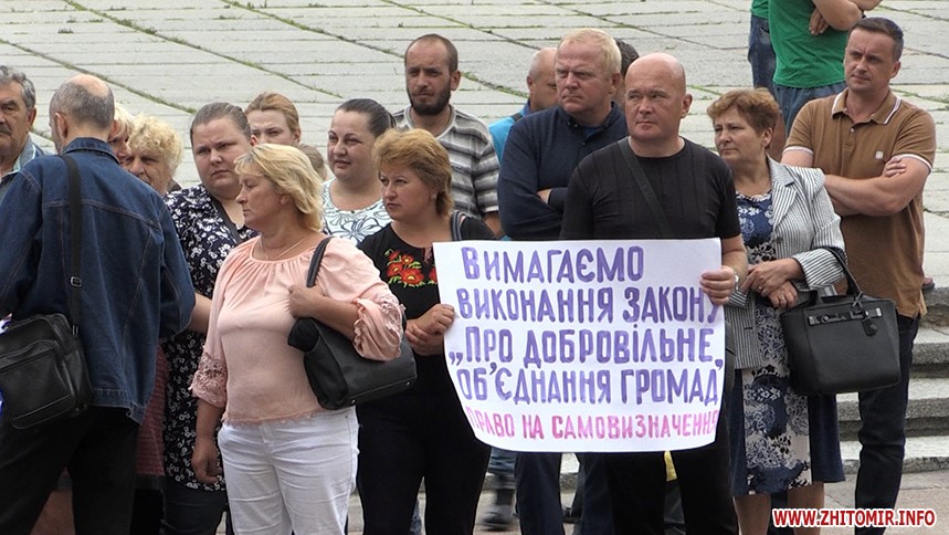 В день засідання чергової сесії Житомирської облради 26 липня на майдані Корольова зібралося близько сотні селян – жителів сіл Харитонівка та Іванівка. Люди розповідають: приїхали відстояти своє право на добровільне об’єднання в ОТГ.