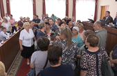 Окрім цього, каже Олександр Бабич, недостатня й чисельність громади. Тому такого об'єднання, як хочуть люди, бути не може. Такі висновки неабияк обурюють селян і вони блокують трибуну. Бурхливі обговорення тривають близько години. В результаті депутати облради вирішують підтримати бажання громади.