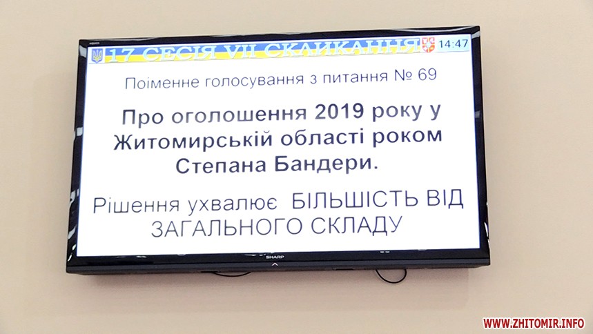 Як повідомляв Житомир.info, проект рішення «Про оголошення 2019 року у Житомирській області Роком Cтепана Бандери»