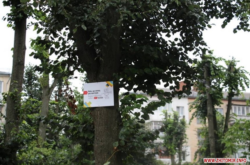 У сквері за Будинком правосуддя, це полюбляє відпочивати молодь, на деревах з’явилися інформаційні таблички.