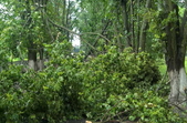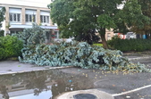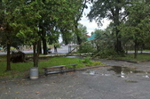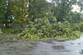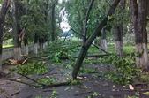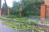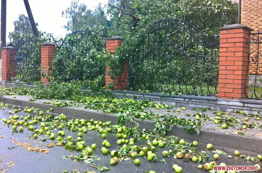 Негода валила дерева, зривала дроти, дахи та паркани. Вулицями «літали» кіоски, під фруктовими деревами земля була всипана зеленими плодами. Фото і відео негоди виклав у своєму фейсбук користувач Гена Ганжа.