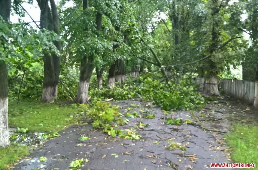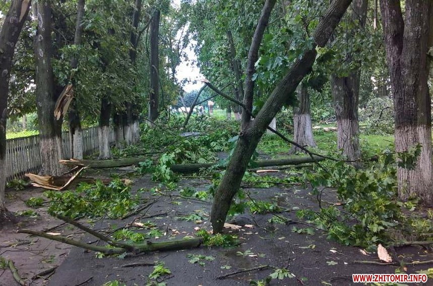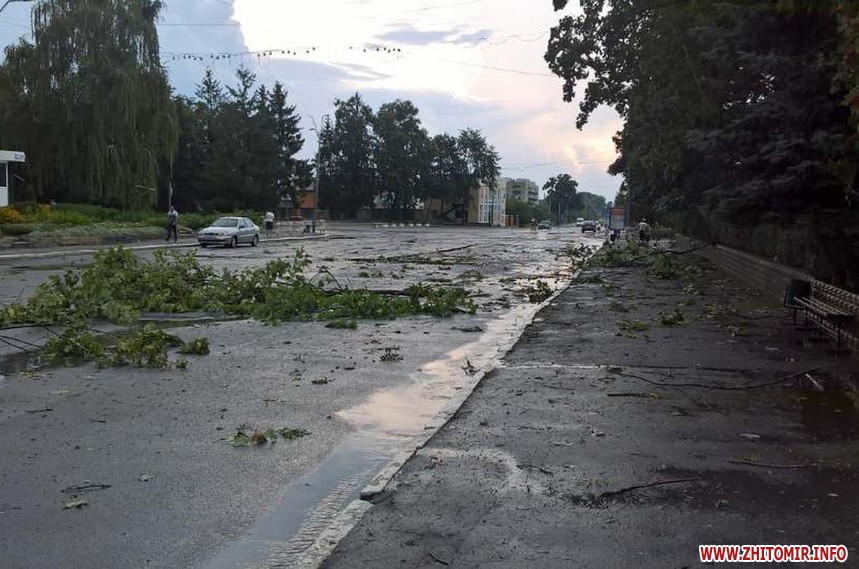 «30 липня на території Баранівського, Черняхівського, Пулинського, Новоград-Волинського, Коростишівського районів та в м. Баранівка пройшов буревій з сильною грозою. Внаслідок негоди відключено 6 ліній електропередач по 10 кВ. Залишились без світла 15 населених пунктів зокрема, 5 у Баранівському, 6 - Черняхівському, 1 - Коростишівському та 3 - в Новоград-Волинському районах. До того ж, у Баранівці частково пошкоджені покрівлі дахів приватних житлових будинків та споруд. Через падіння дерев та гілля на 10 вулицях міста пошкоджено лінії електропередач, що призвело до часткового знеструмлення населеного пункту. Відновлювальні роботи тривають», - повідомила ОДА.