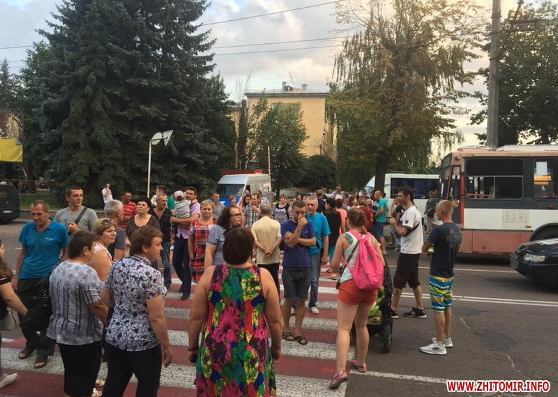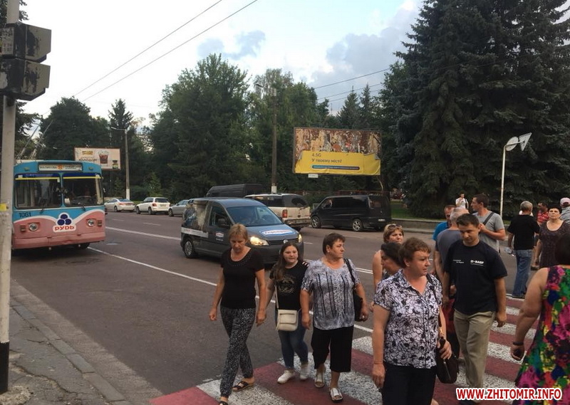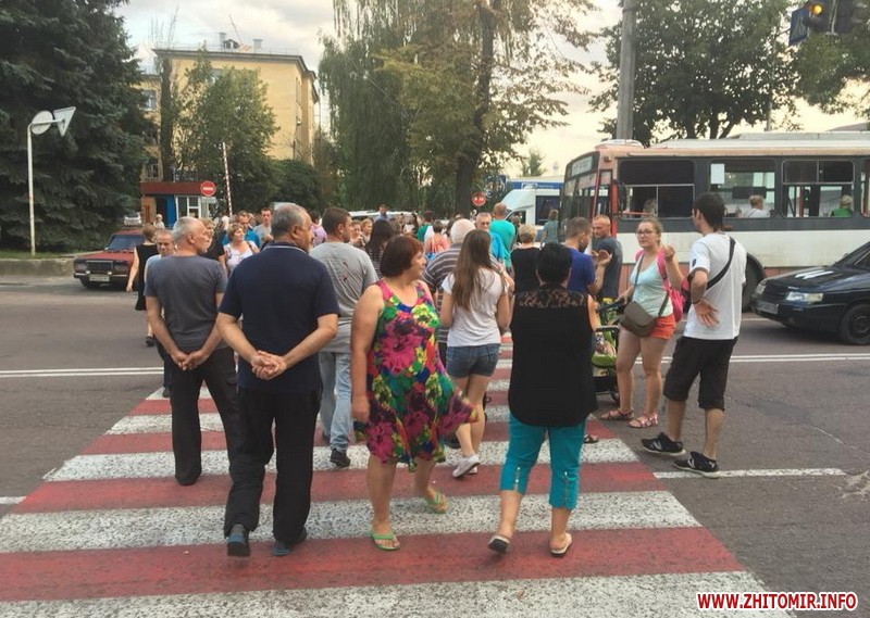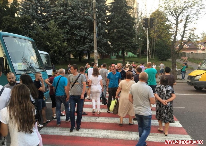 Увечері 31 липня вулицю Велику Бердичівську в районі Першої міської лікарні у Житомирі перекрили люди, через що на дорозі утворився затор.