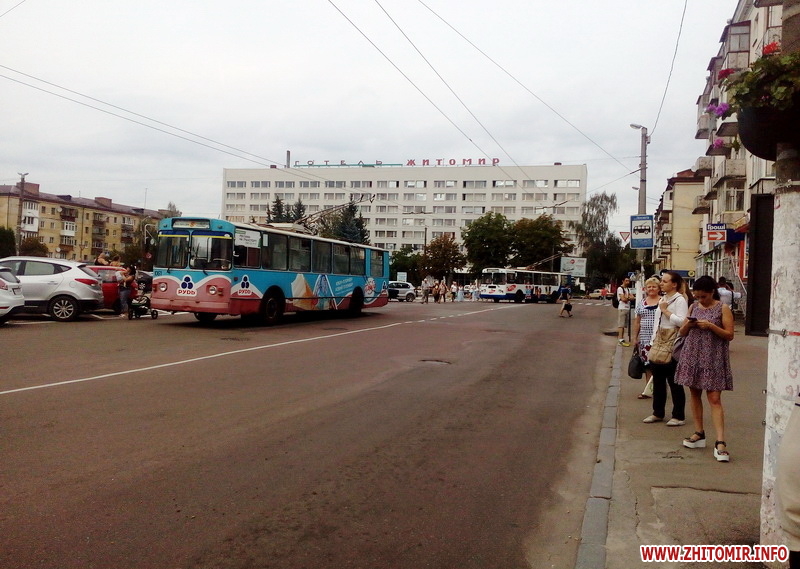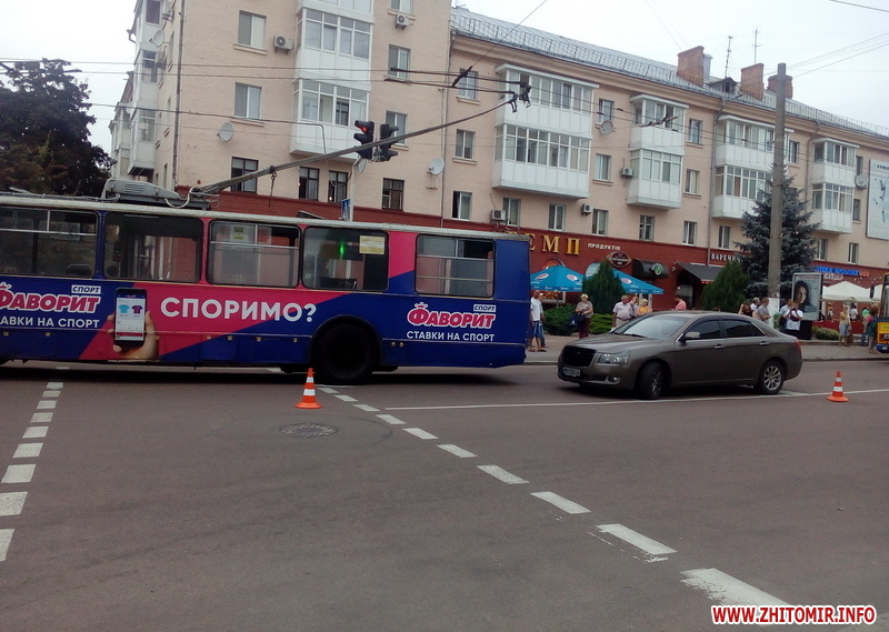 Близько 18.30 1 серпня через дорожньо-транспортну пригоду за участі тролейбуса і легковика на майдані Перемоги у Житомирі зупинився електротранспорт.