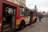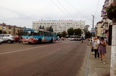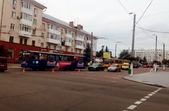 На вулиці Перемоги вишикувалися тролейбуси, рух яких був заблокований.