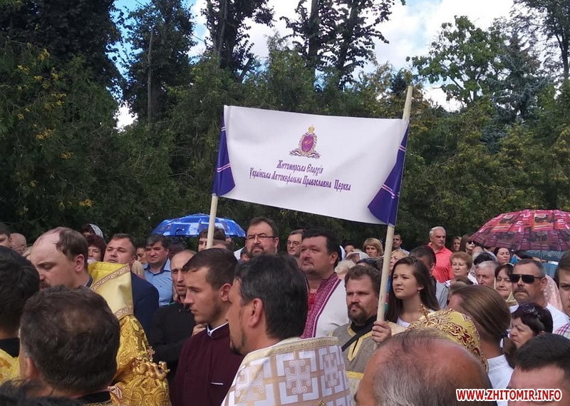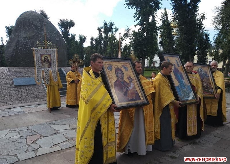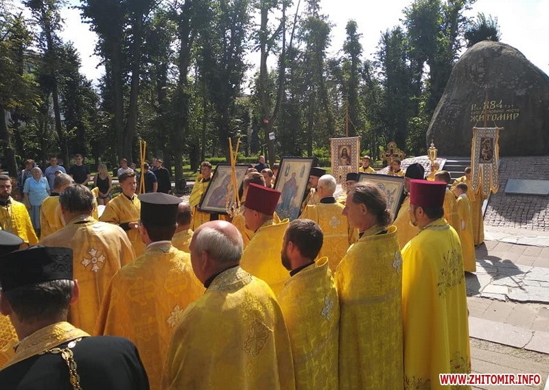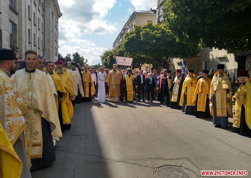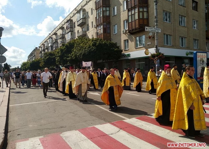Декілька сотень вірян зібралися на вулиці Кафедральній і разом рушити хресною ходою вулицями Житомира. Цього дня на вулиці Михайлівській має відбутися святковий концерт.