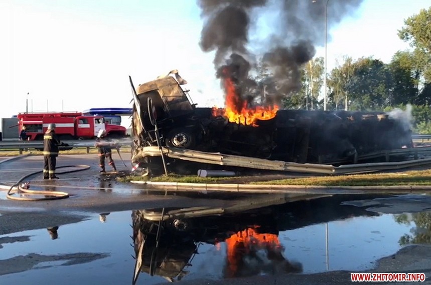 Користувачі соцмереж Сергій Терещук та Aleksandr Petrychenko, які стали свідками загоряння перекинутої вантажівки, виклали на своїх сторінках фото та відео ДТП: чорне полум’я над причепом, спричинене, вочевидь, горінням шин, та гасіння пожежними. За даними поліції, кабіна обгоріла, але фрукти залишились практично неушкодженими.