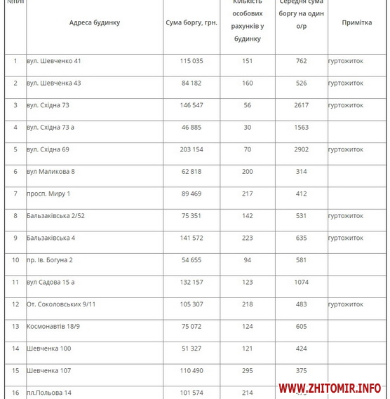 Перелік найбільших будинків-боржників:
