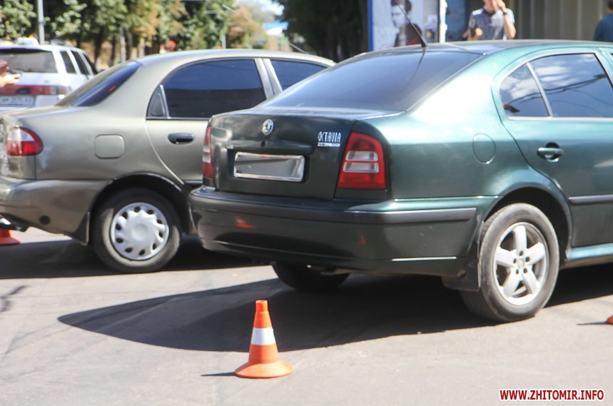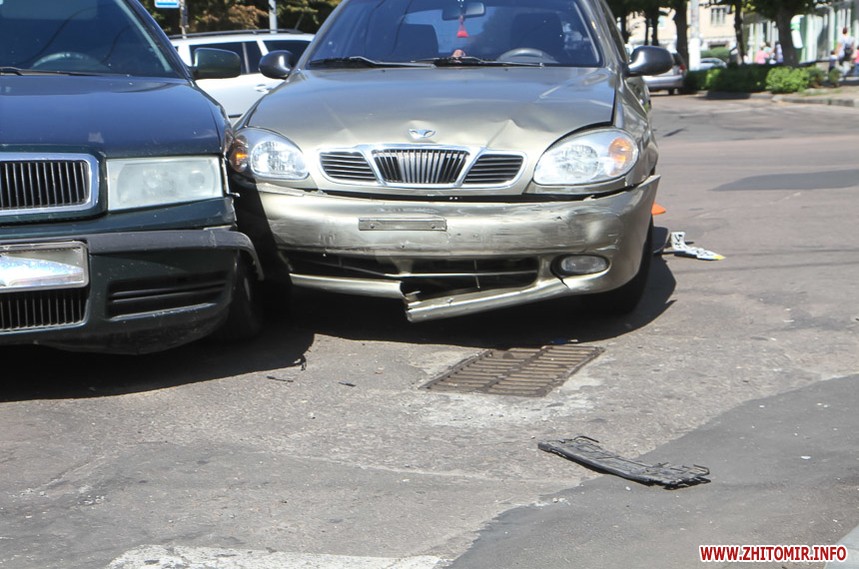 На перехресті вулиць Великої Бердичівської і Театральної у Житомирі зіткнулися автомобілі Daewoo Lanos і Skoda Octavia.