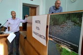 Нікітін хоче прозвітувати за два роки роботи підприємства, активістів запевнили, що звіт триватиме півгодини, а потім вони зможуть задати питання, втім, не всі можуть втриматися та не перебивати виступаючого. Резулювати ситуацію в залі намагається заступник мера з питань житлово-комунального господарства Сергій Кондратюк.