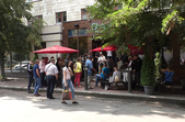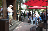 Одразу ж після початку блокування, відвідувачі кав’ярні почали обурюватись, що їм забороняють увійти до закладу. Врешті після години блокування на Старий бульвар приїхали власники мережі кав’ярень. Блокувальники попросили їх пояснити ситуацію, яка виникла із мапою України без Криму і отримали відповідь, що це – помилка.