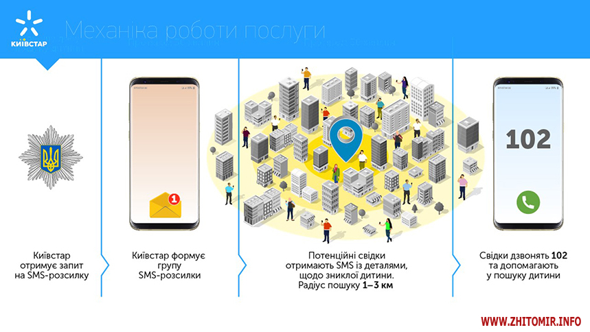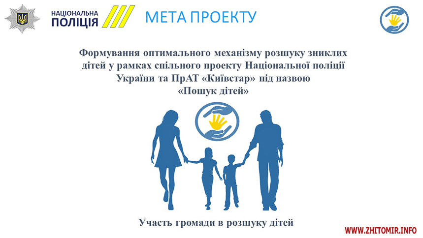 Із п’ятниці, 31 серпня, в Житомирі розпочав роботу спільний проект Національної поліції та оператора мобільного зв’язку «Київстар» - «Пошук дітей».