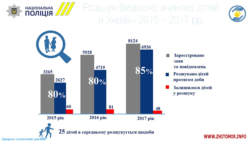 «Починаючи із сьогоднішнього дня в Житомирі розпочинаються практичні заходи спільно із компанією «Київстар», яка надає свої послуги для покращення і пришвидшення реагування у разі зникнення дітей, які пішли з дому. Завдяки тому, що компанія «Київстар» пішла нам назустріч, вона надає нам можливість оперативно, в короткі терміни знайти зниклих дітей. На жаль, статистика у нас не покращується, а тільки погіршується. Якщо ми порівняємо 2017 та 2018 роки, то за цей термін у нас приблизно на 60% збільшилась кількість безвісти зниклих дітей. Слава Богу, завдяки нашій спільній співпраці і з громадою, і з небайдужими громадянами, ми їх усіх знайшли та повернули батькам. Але ця статистика існує, і проблема не зникає. Завдяки цьому спільному проекту ми сподіваємось на ще кращу роботу в цьому напрямку», - говорить начальник ГУНП України в Житомирській області Вячеслав Печененко.