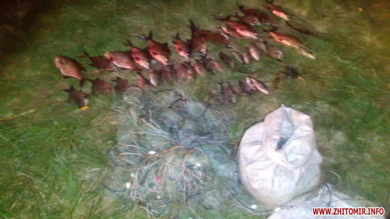 «23 серпня під час нічного рейду на річці Тетерів, що у місті Житомирі патрульними було виявлено грубе порушення правил рибальства. Двоє громадян ловили рибу та раки забороненим знаряддям лову - волоком. Їм вдалося зловити 8 кг водних біоресурсів, з яких 401 екземпляр раків. Збитки завдані рибному господарству області склали 10 599 грн. 50 коп. Стосовно порушників складено два адміністративні. Після рішення суду їм доведеться сплатити штраф (до 680 грн) та компенсувати завдані державі збитки. Також, під час рибоохоронної роботи 26 серпня о 4 год. ранку на річці Ірша, біля села Старий Бобрик Хорошівського р-ну виявлено грубе порушення правил рибальства - громадянин ловив рибу двома сітками. Встиг виловити 9 кг водних біоресурсів, а саме: 14 екз. ляща, 3 екз. карася, 10 екз. плітки, 5 екз. окуня, 2 екз. щуки, 6 екз. плоскирки та 4 екз. раків. Сума збитків склала 4 352 грн. Сітки та риба вилучені та опломбовані. Стосовно браконьєра був складений адміністративний протокол як за грубе порушення правил рибальства», - йдеться у повідомленні.