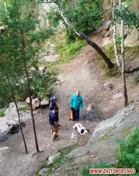 Як повідомляв Житомир.info, 15 червня 2018 року в Житомирі рятувальники підіймали та транспортували до карети швидкої медичної допомоги дівчину, яка впала зі скелі.