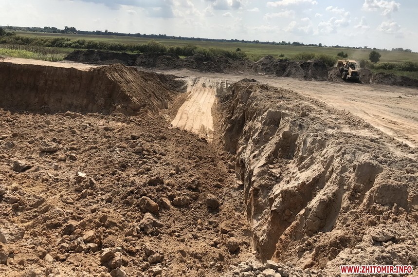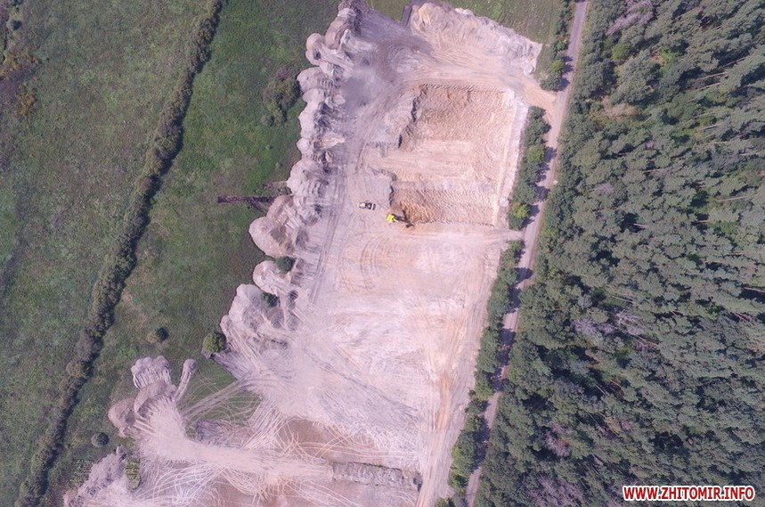 «Зі слів мешканців села Городище піщану грунтосуміш за допомогою спецтехніки з поля вивозить будівельна організація «Sinohydro Corporation Limited» для реконструкції Північної дороги м. Житомир по трасі М-06 Київ-Чоп (зі сторони села Вереси Житомирського району). Інспекторами з охорони навколишнього природного середовища Житомирської області повторними виїздами на місце здійснення незаконного видобутку піску (31.08.2018 та 04.09.2018) встановлено, що проведення земляних робіт продовжується, площа порушених земель збільшується (складає 4,92 га), глибина виїмки досягає близько 6 метрів. Також, необхідно зазначити, за наслідками проведених робіт існує загроза порушення гідрологічного режиму земель, що може в подальшому спричинити всихання лісових насаджень, що межують із місцем незаконного видобутку корисних копалин місцевого значення-піску», - інформує екоінспекція.
