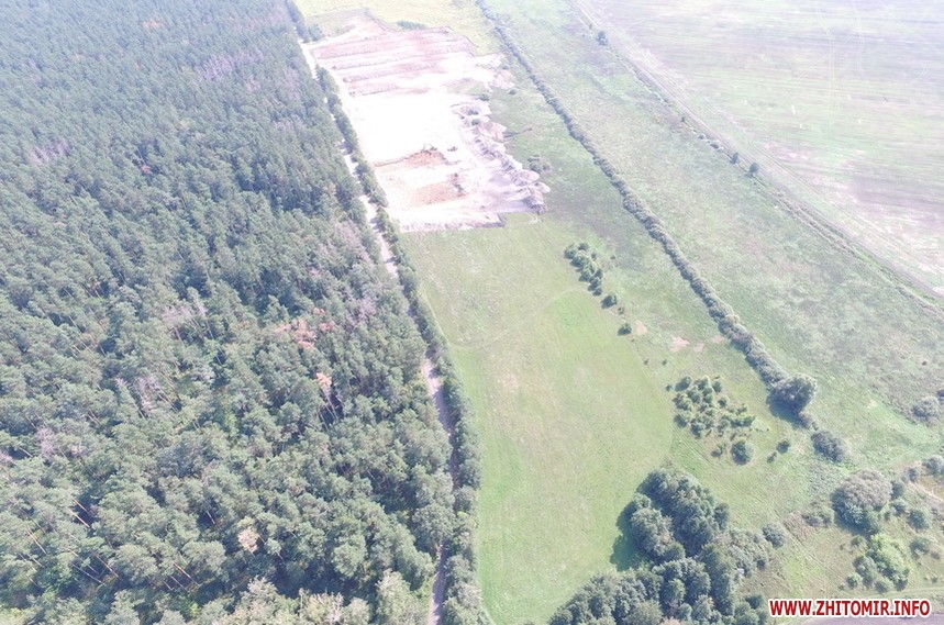 «На чотирьох земельних ділянках сільськогосподарського призначення площею по 2 га із цільовим призначенням для ведення особистого селянського господарства, що перебувають у власності громадян, під виглядом рекультивації порушених земель загальною площею 8 га проводяться роботи з видобутку корисної копалини місцевого значення – піску промисловим способом. Так, 20 серпня поточного року в присутності слідчо-оперативної групи підрозділу ГУНП в Житомирській області проведено обстеження земель, де виявлено, що проведеними земляними роботами знято ґрунтовий покрив (родючий шар ґрунту) та утворено котлован орієнтовними розмірами 73 м х 84 м, глибина, якого досягає 3 метрів, площа порушених земель на момент обстеження орієнтовно складає 0,6205 га. Окрім того, під час здійснення обстеження земляні роботи з видобування піщаної грунтосуміші та її вивезення не припинялись», - йдеться у повідомленні.