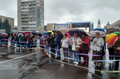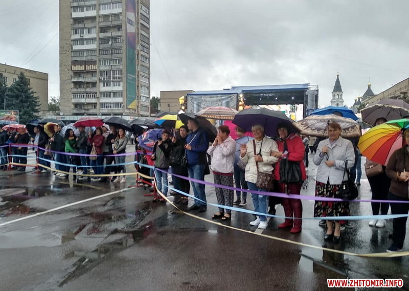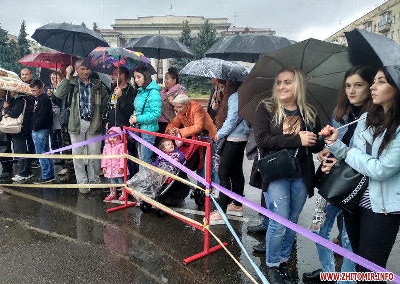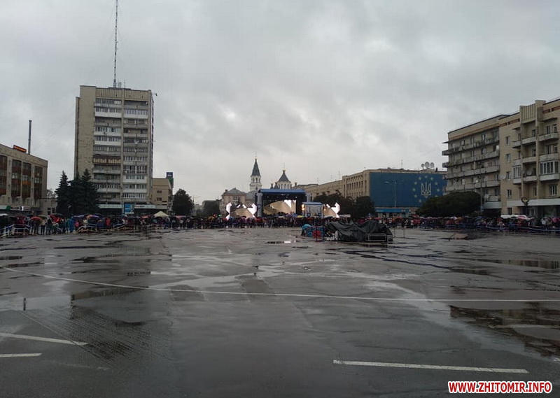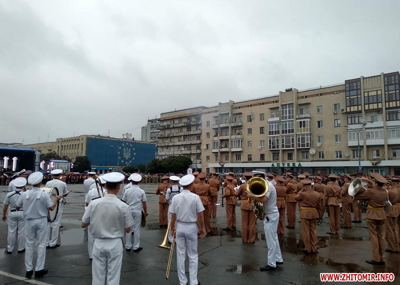 Попри погодні умови хода оркестрів вулицею Київською була відмінена. Станом на 18:15 військові налаштовували інструменти та готувалися до виступів. Житомиряни та гості міста під парасольками на майдані Соборному очікують на початок.