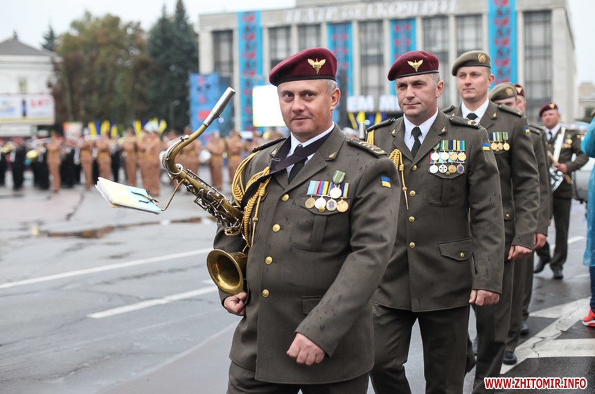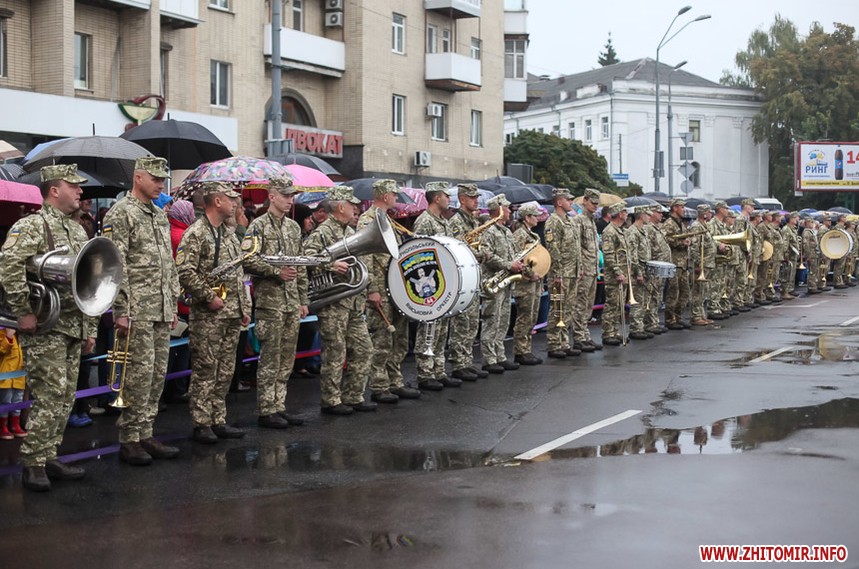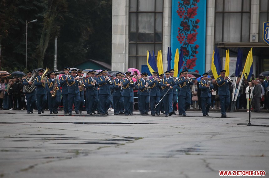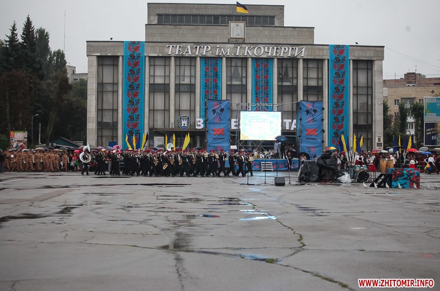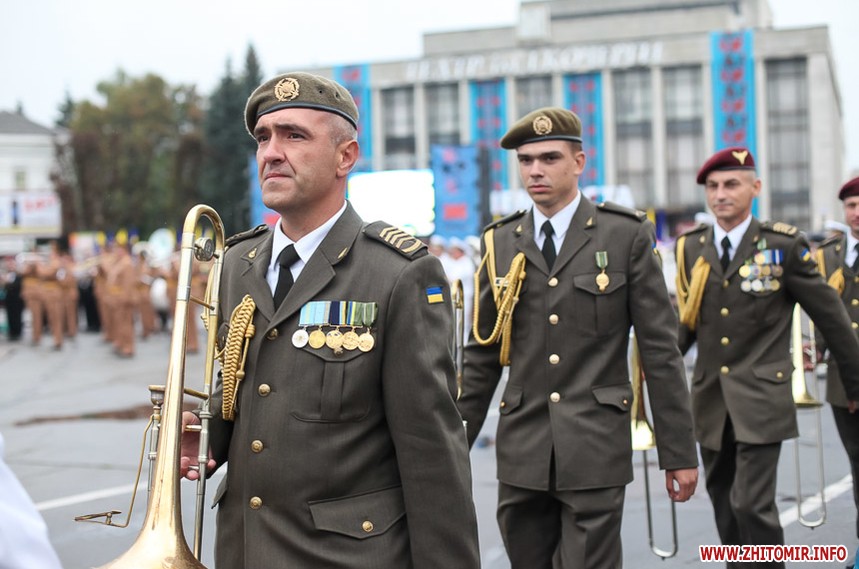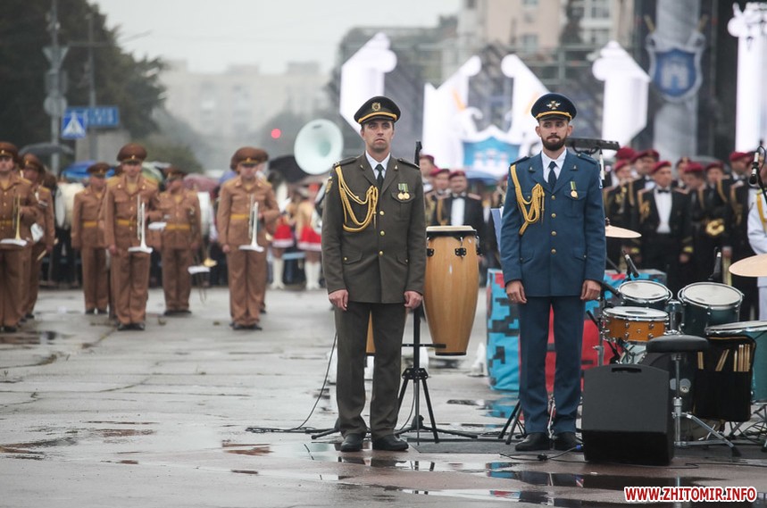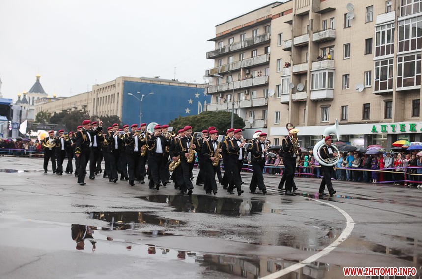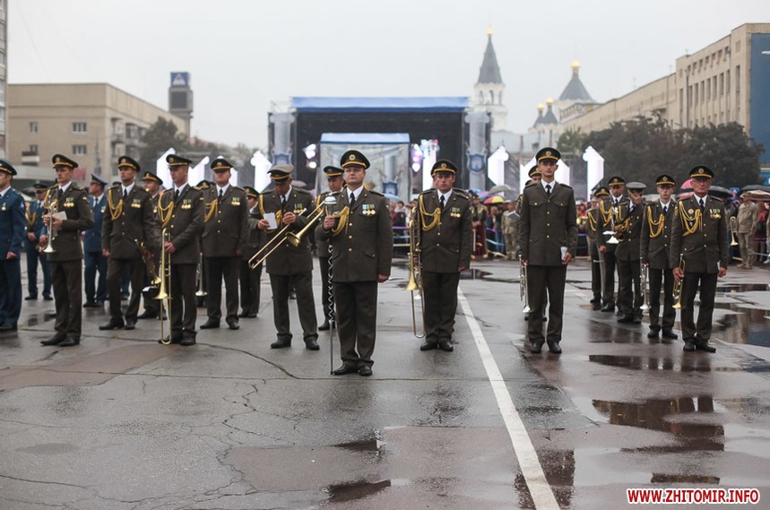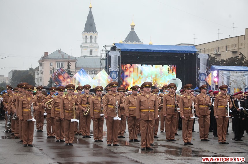 8 вересня дощова погода завадила духовим військовим оркестрам, які з’їхалися з різних куточків України, пройтися ходою вулицею Київською в Житомирі. Але незважаючи на погодні примхи парад військових оркестрів все ж відбувся на майдані Соборному.
